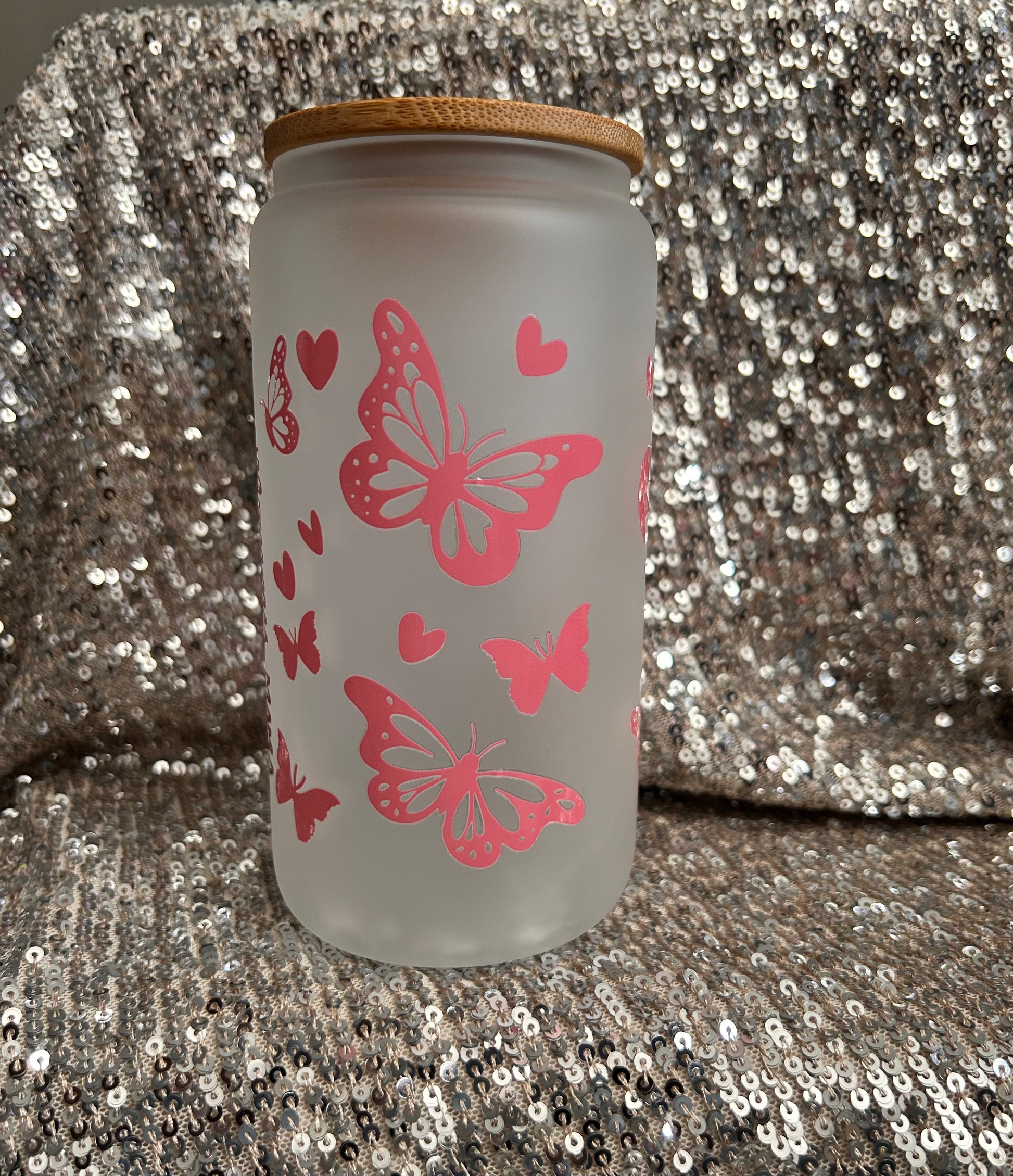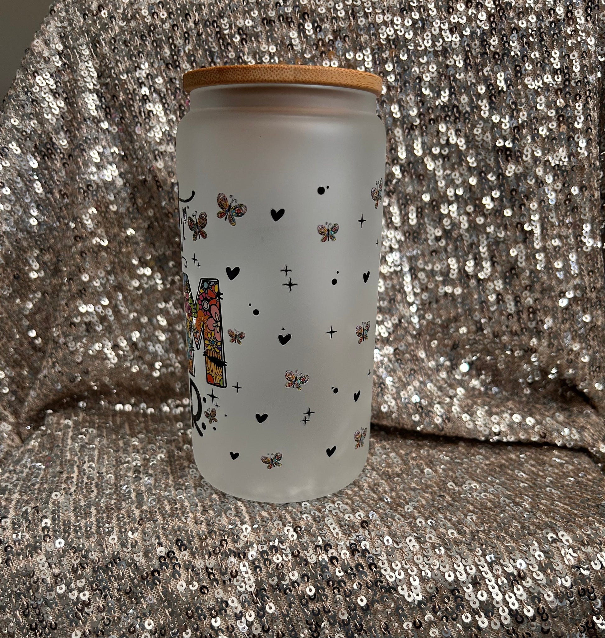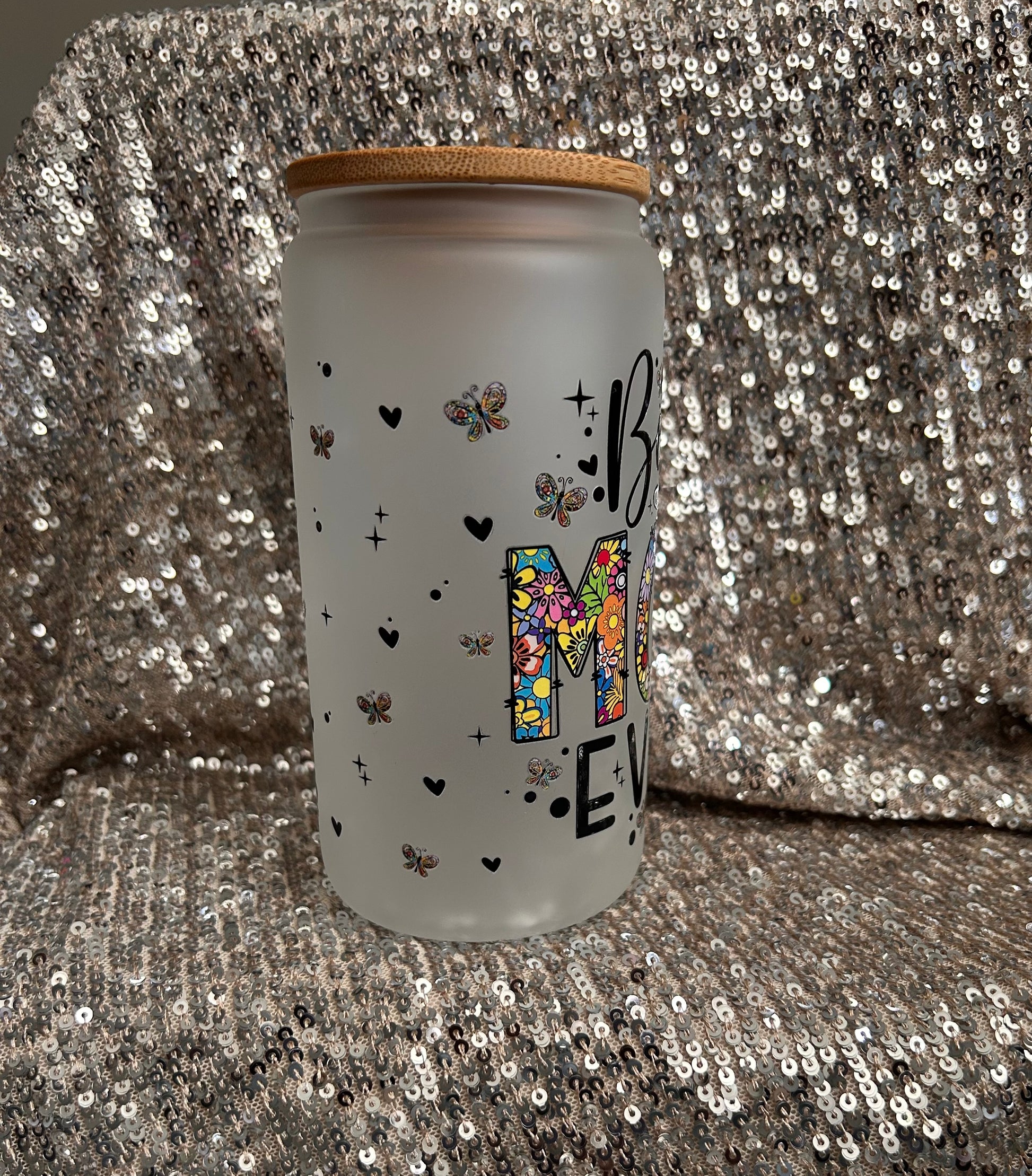 Frosted Glass Cup w/ Bamboo Lid & Straw